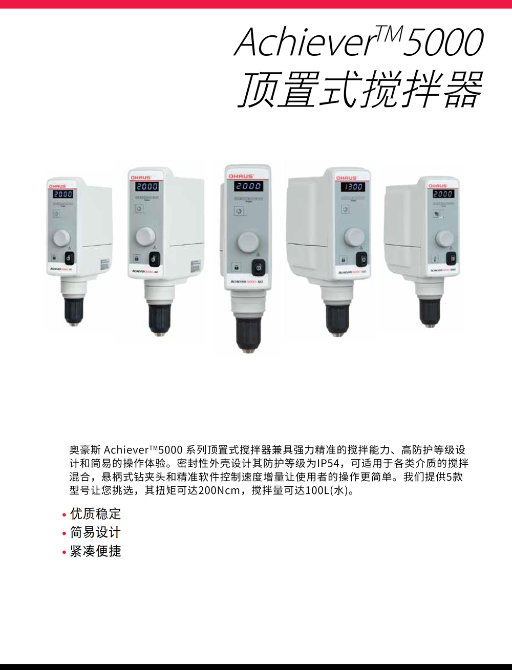 奧豪斯Achiever?5000系列頂置式攪拌器日常實驗室便攜強力攪拌機